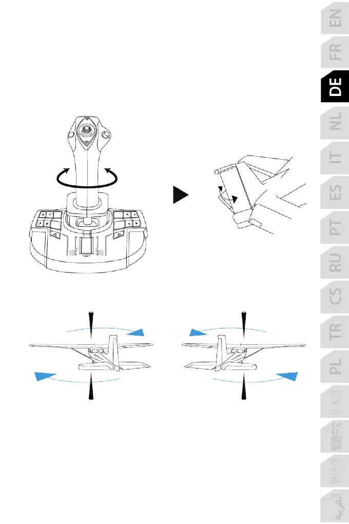 Ihr Joystick verfügt über eine Steuerruder-Funktion (10). In einem Flugzeug betätigt der Pilot