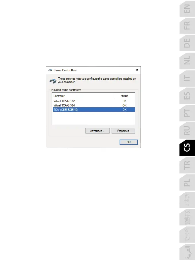 prodává samostatně) na zadní straně kniplu. Po instalaci ovladače lze na zadní straně TCA