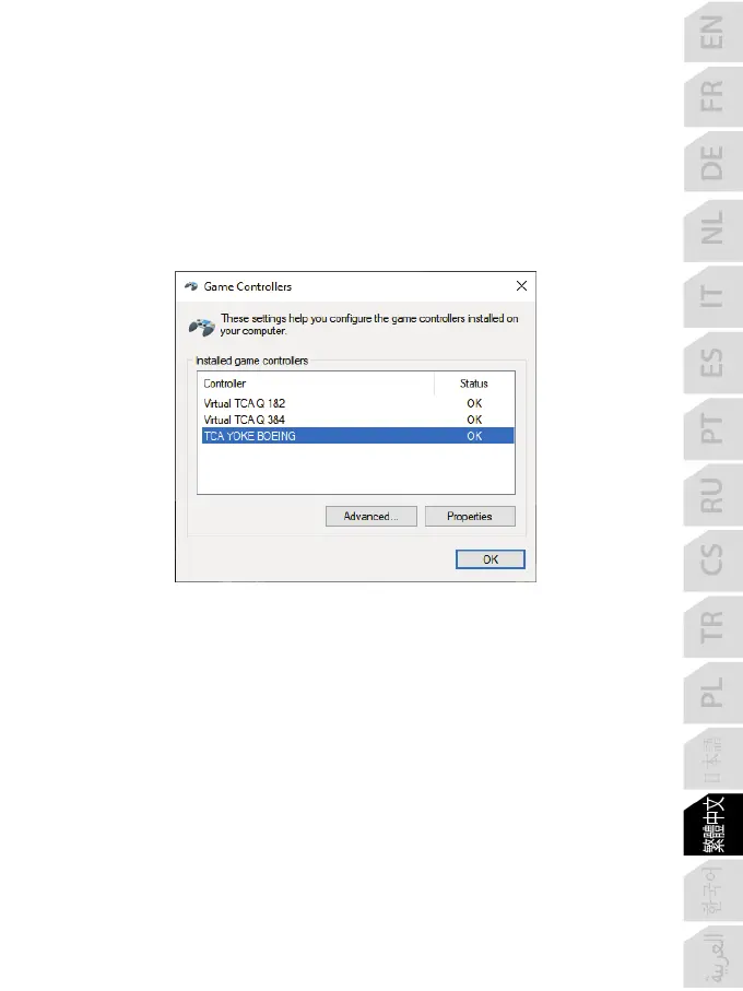 裝置獨立出現在遊戲控制器對話方塊中: