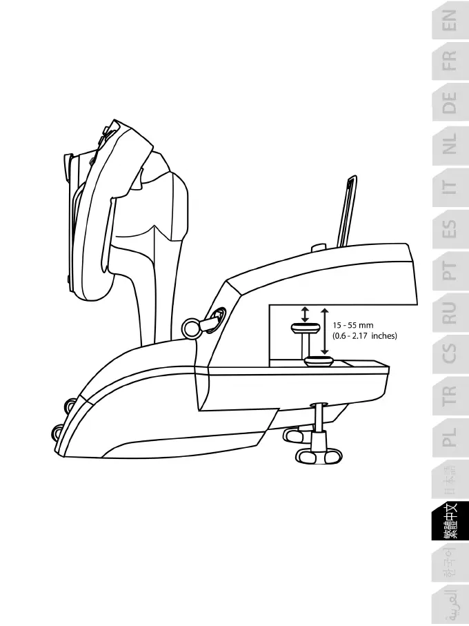 在檯面或桌面上的夾緊範圍為 15 55 mm