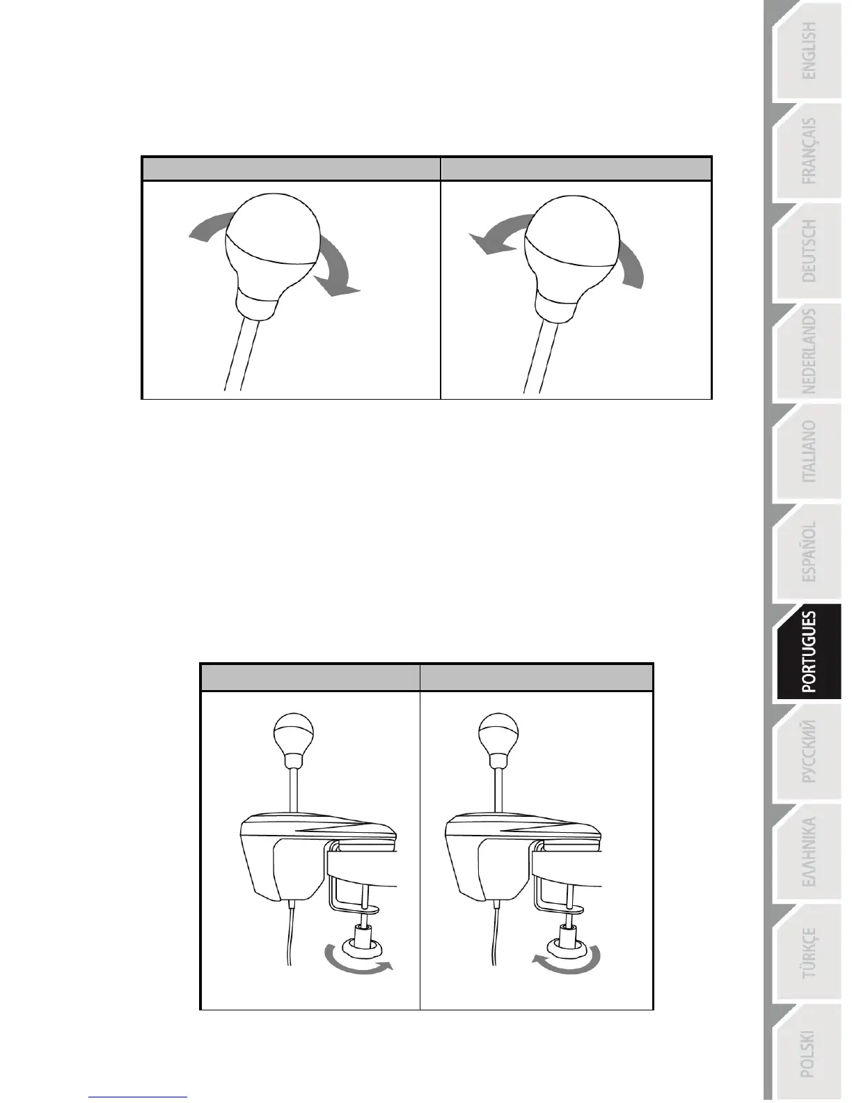 2. Para apertar: rode o manípulo de fixação no sentido anti-horário.