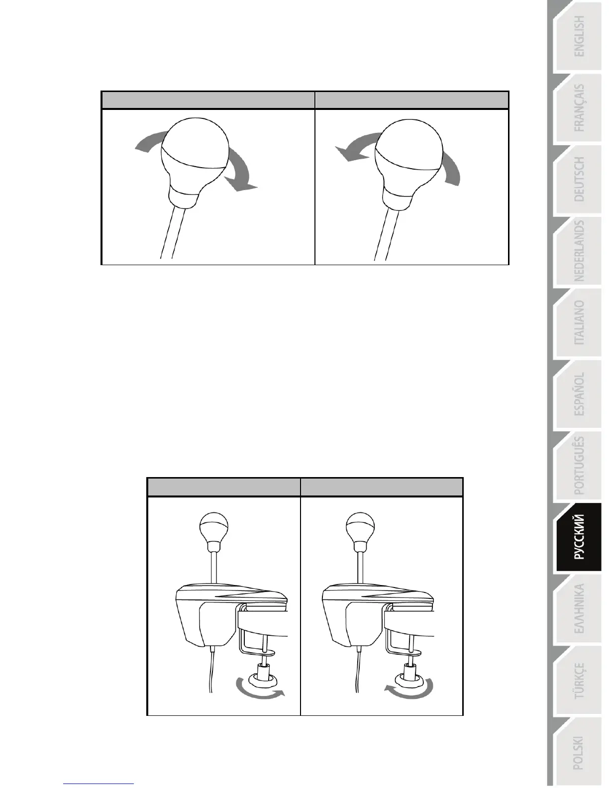 2. Для затягивания поверните ручку зажима против часовой стрелки.