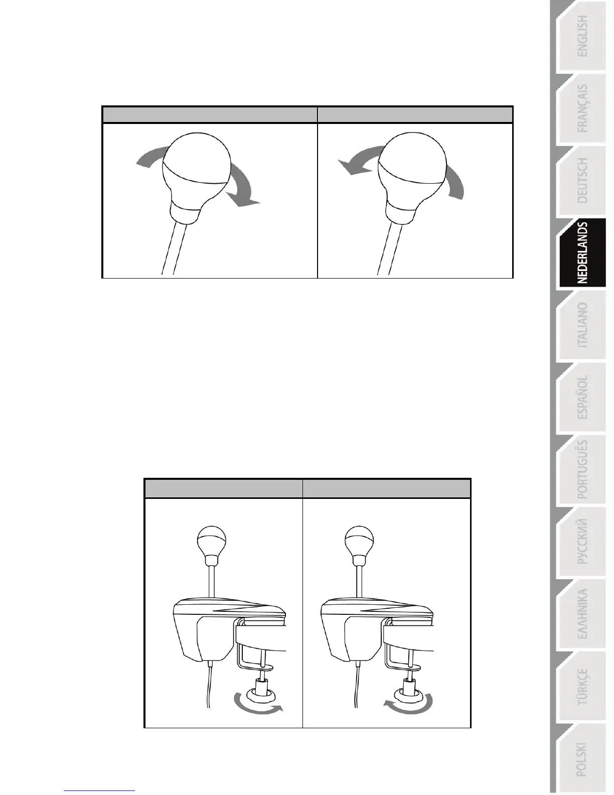 Losdraaien: draai het klemwiel rechtsom (met de wijzers van de klok mee).