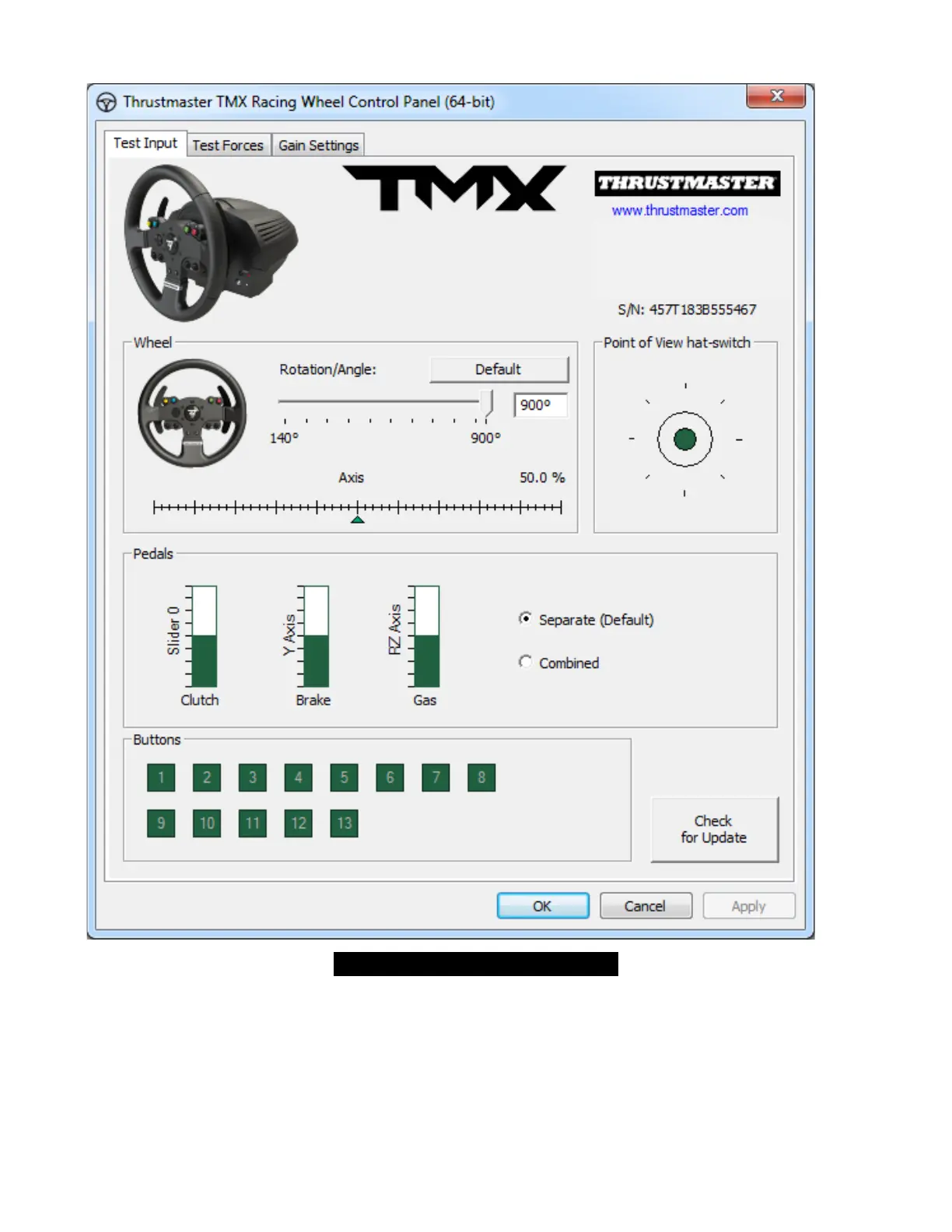 - [Properties] をクリックし、ステアリングホイールをテストします。