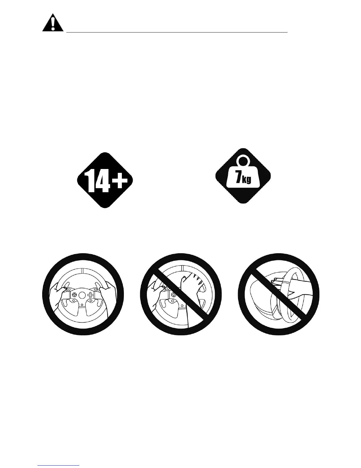 * Make sure that the racing wheel’s base is properly secured, as per this manual’s instructions.