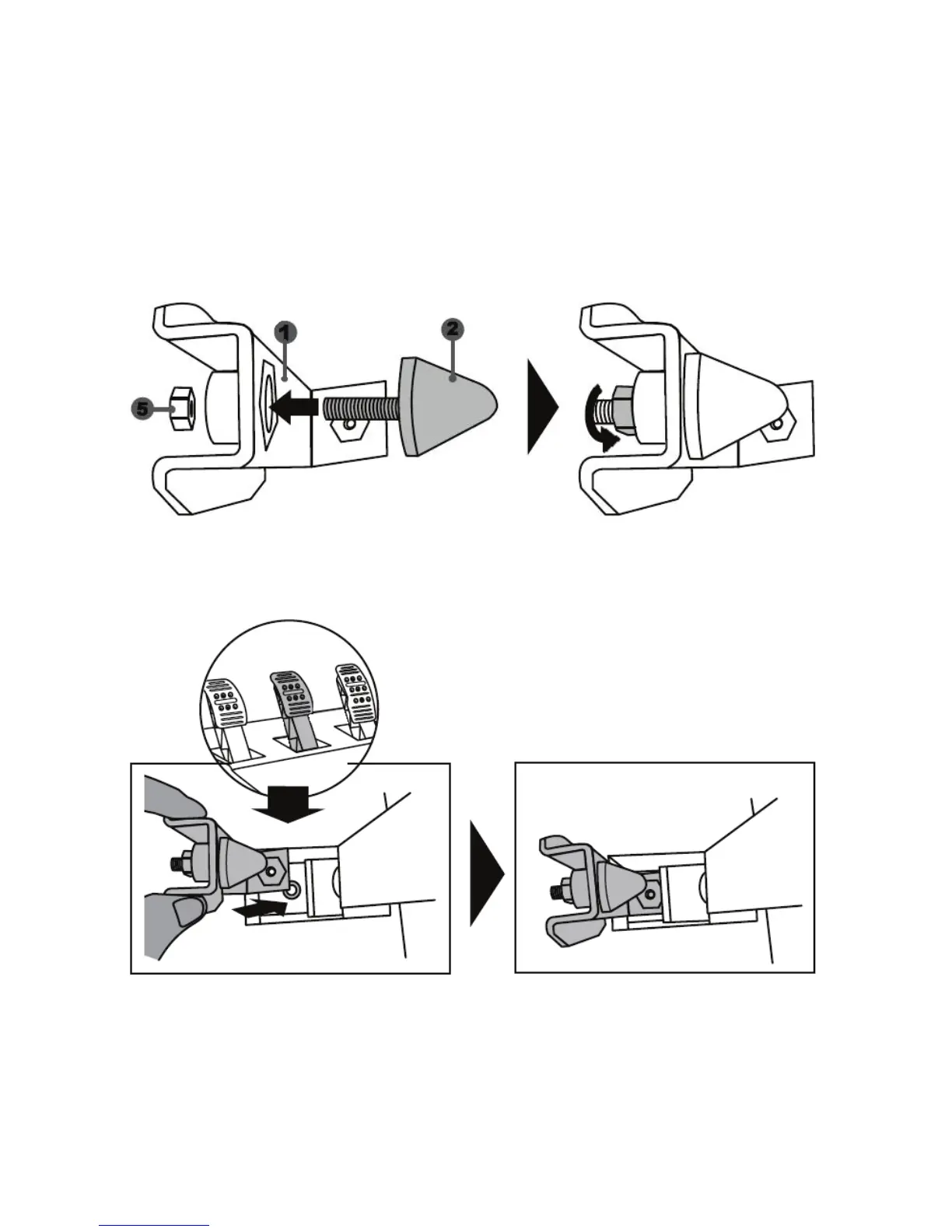 - Screw the conical stop (2) onto its metal support (1).