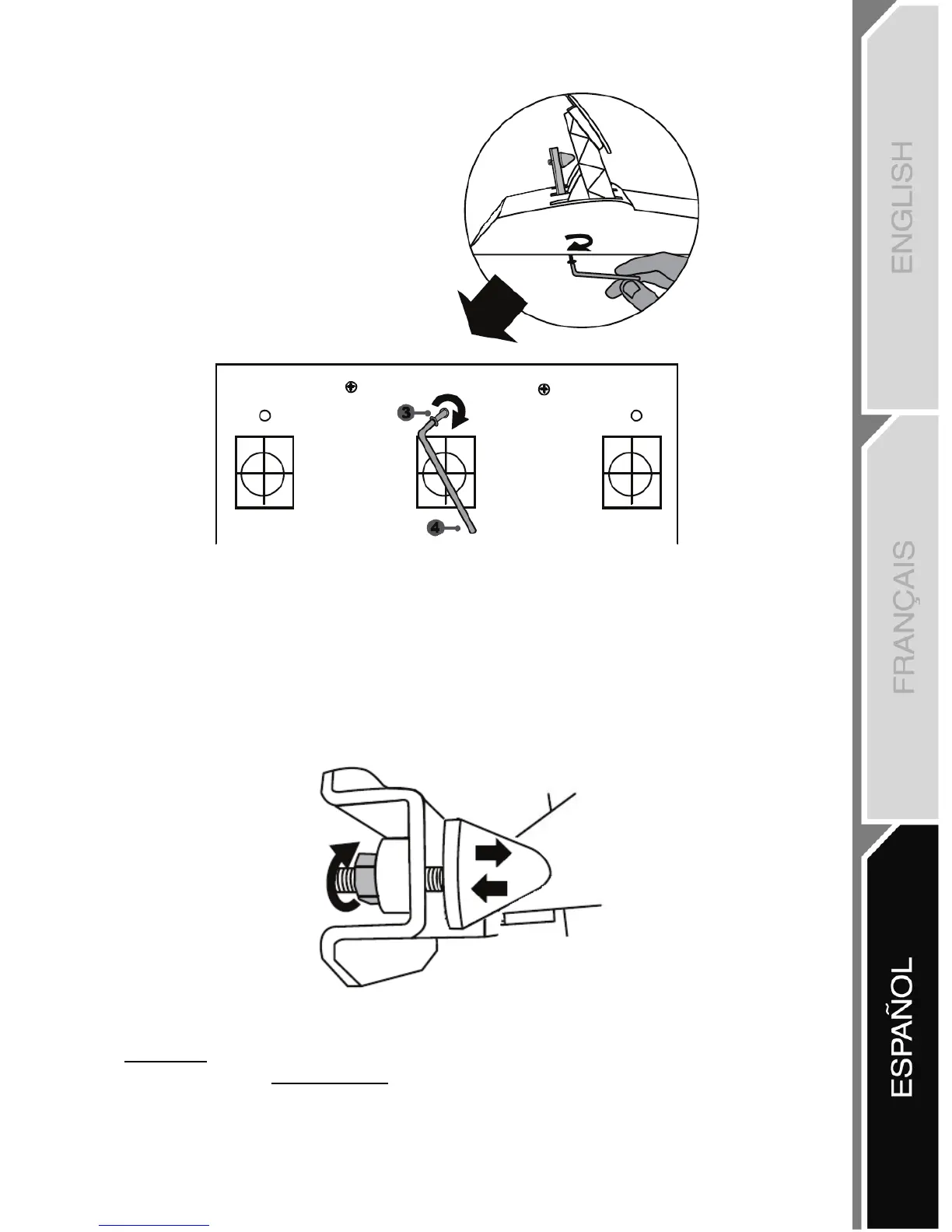 - Con la llave Allen de 2,5 mm incluida (4), fija la unidad con el tornillo de sujeción (3) y la rosca de