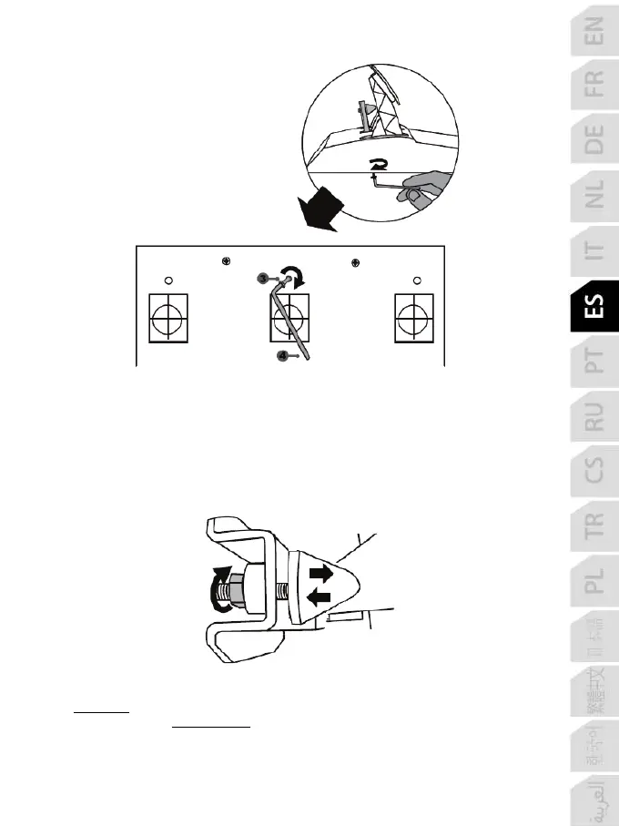 - Con la llave Allen de 2,5 mm incluida (4), fija la unidad con el tornillo de sujeción (3) y la rosca de