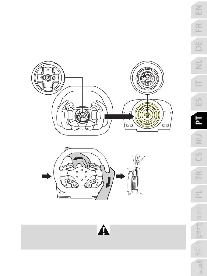 Assim que os conectores estiverem posicionados corretamente, rode o anel do dispositivo Thrustmaster