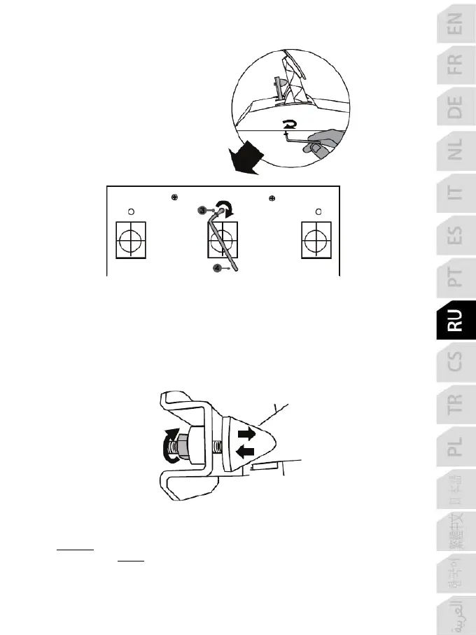 Слегка ослабив гайку (5) и сдвинув конусообразный стопор (2) к задней части рычага педали,