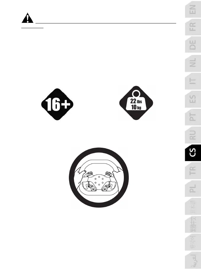 * Během kalibrace a hry nestrkejte ruce nebo paže do otvorů závodního volantu.