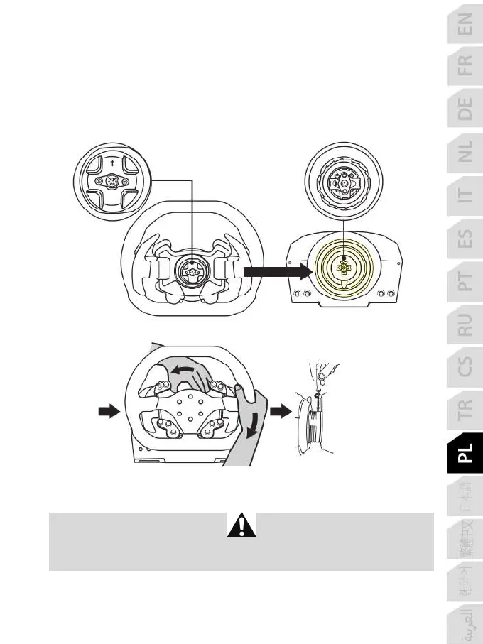 Po prawidłowym ustawieniu złączy obróć pierścień mechanizmu Thrustmaster Quick Release (15)