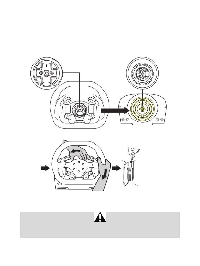 正确放置接头之后,只需使方向盘 (2) 固定到位,同时逆时针旋转 Thrustmaster(图马思