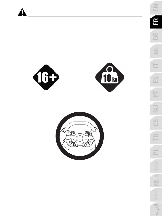 * Lors des phases de jeu, laissez toujours vos deux mains correctement positionnées sur le volant