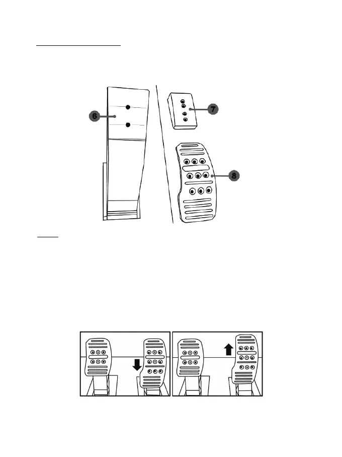 - 一个金属踏板头 (8),带有多个穿孔(油门踏板 9 个,刹车踏板 6 个,离合器踏 6