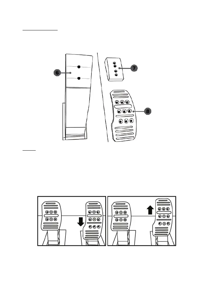 - 一個金屬踏板頭 (8),上有多個開孔(9 個為油門踏板使用、6 個為煞車踏板使