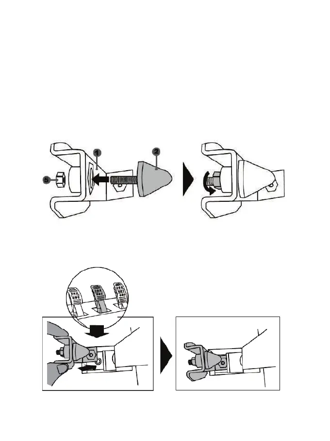 - 將位置調整螺母 (5) 擰進底部(錐形塞的螺絲孔)。