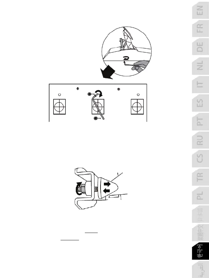 를 약간 풀어서 페달 암의 뒤쪽에 가까운 원뿔형 정지 장치