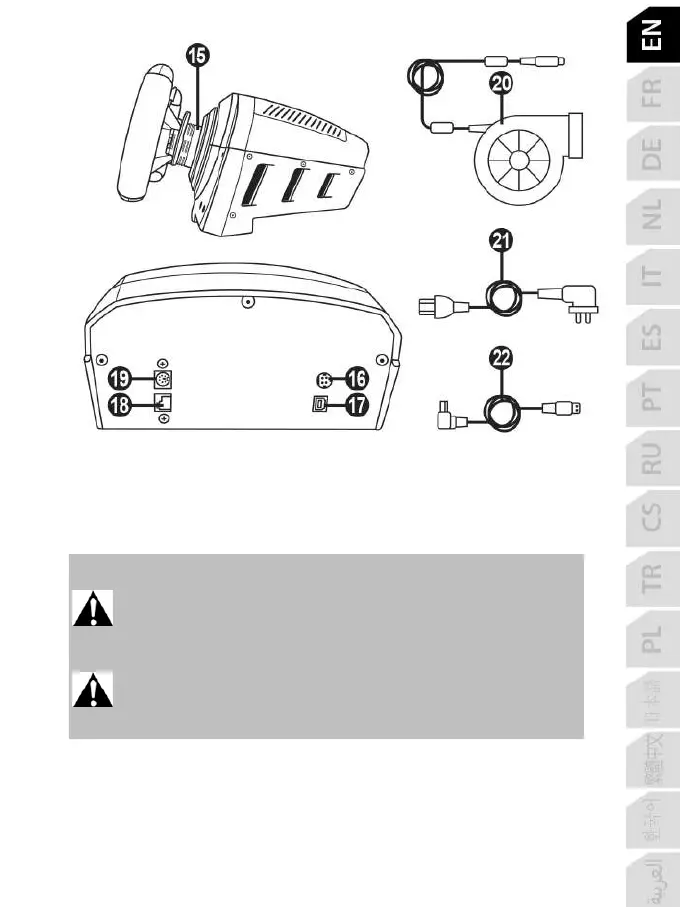 RACER base, even if the connector is compatible! For example, never connect the power adapter for