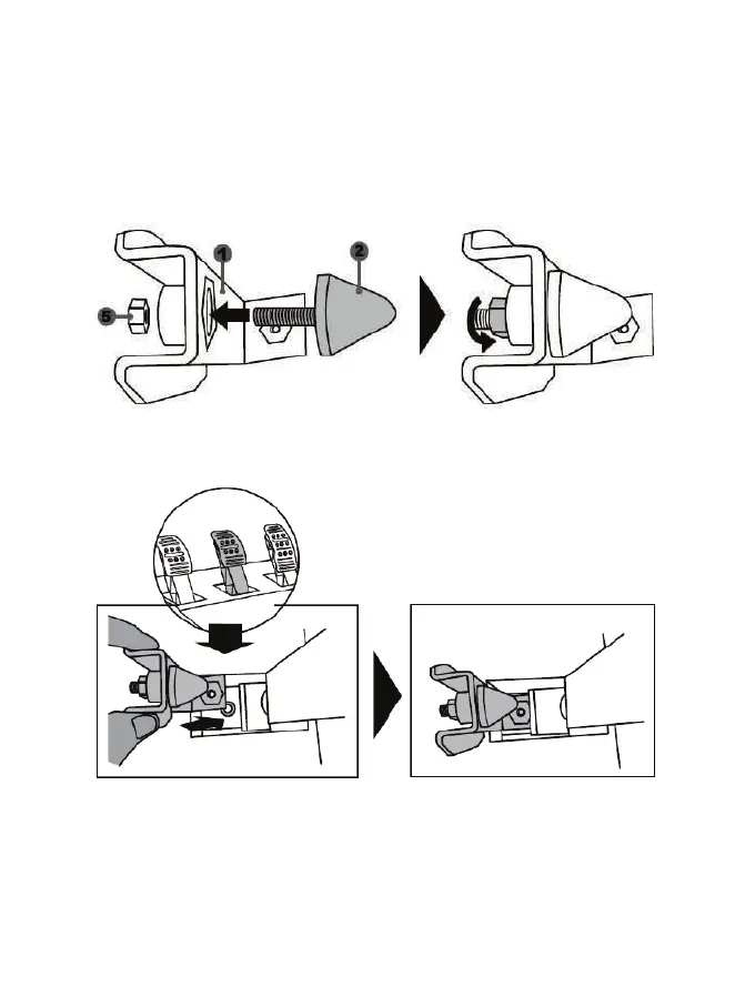 - Skruva fast det koniska stoppet (2) på dess metallstöd (1).