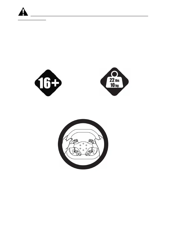 * Kalibrálás és játék közben, soha ne tegye a kezét vagy karját a versenykormány nyílásaiba.