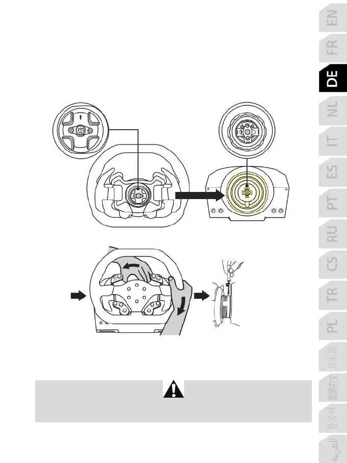 Nach dem Montieren Ihres Rennlenkrads drehen Sie diesen um 180° (mit Blick auf das Lenkrad sollte