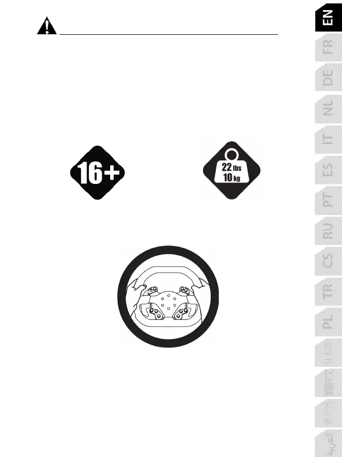 * Make sure that the racing wheel’s base is properly secured, as per this manual’s instructions.