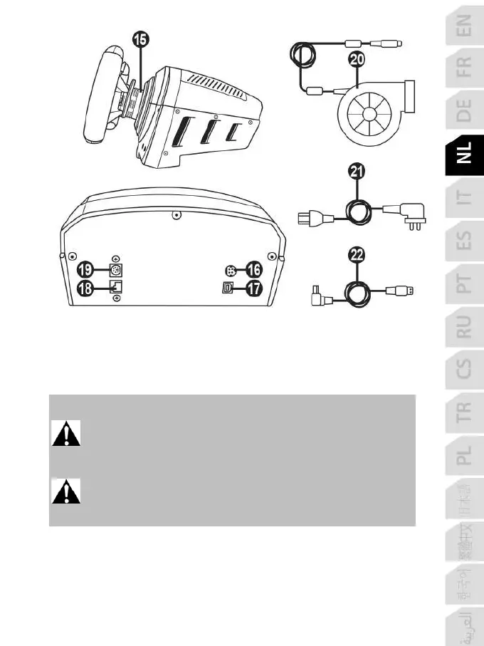 XW RACER, zelfs als de connector compatibel is. Sluit bijvoorbeeld nooit de voeding van het T500 RS
