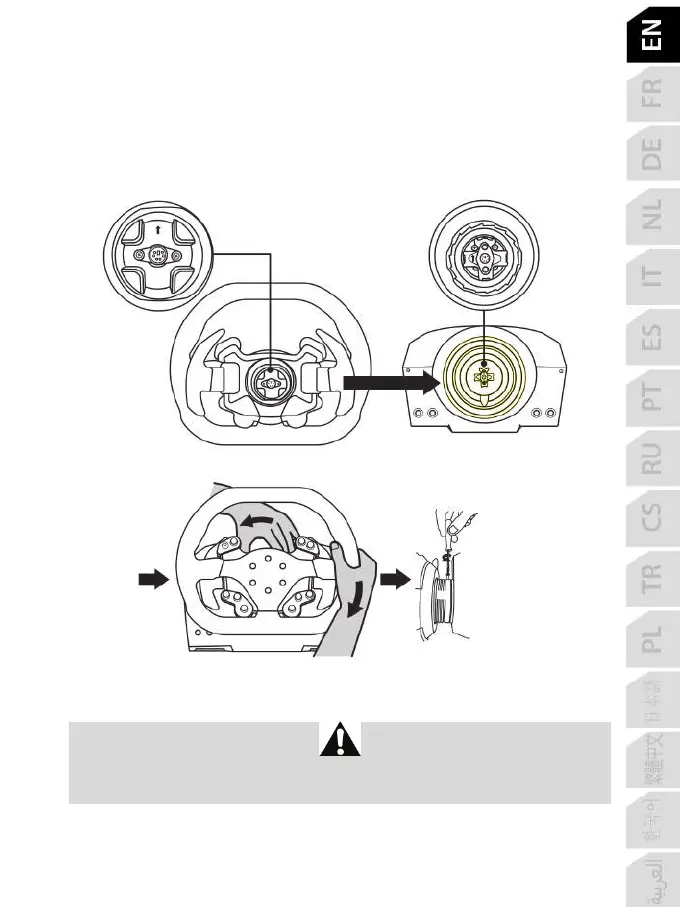 Once the connectors are correctly positioned, simply rotate the Thrustmaster Quick Release (15) device’s