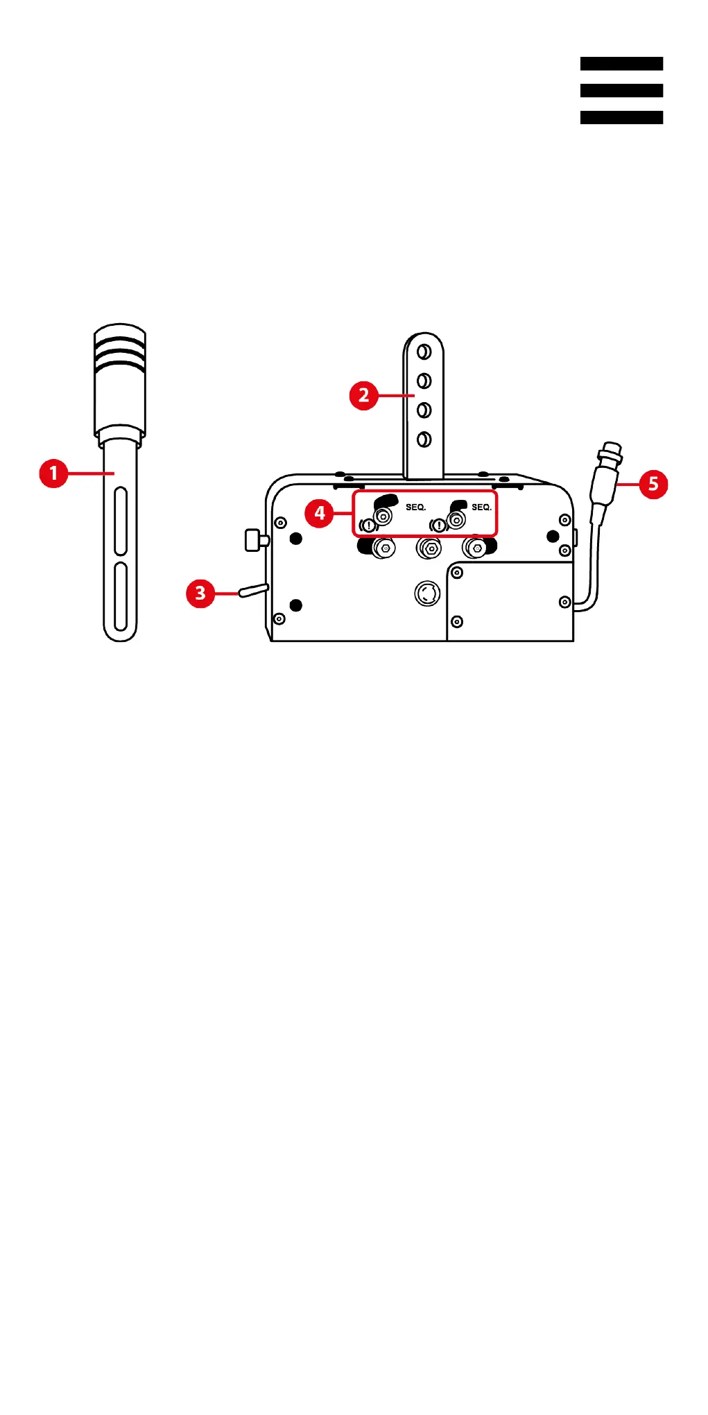 1. 脱着式レバー (デフォルトの状態では取り付けられて