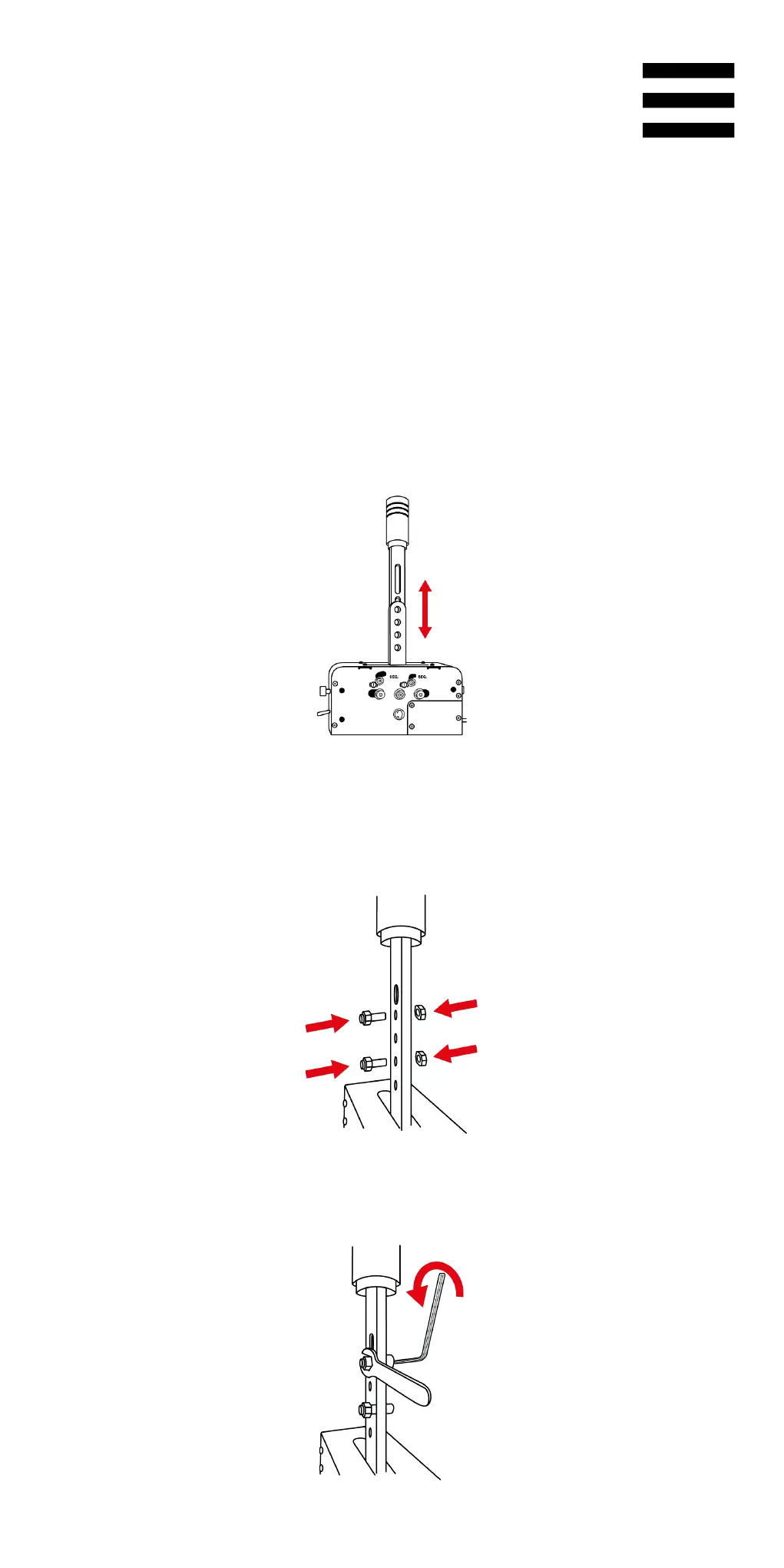 die Befestigungsarme. Stellen Sie den Hebel auf