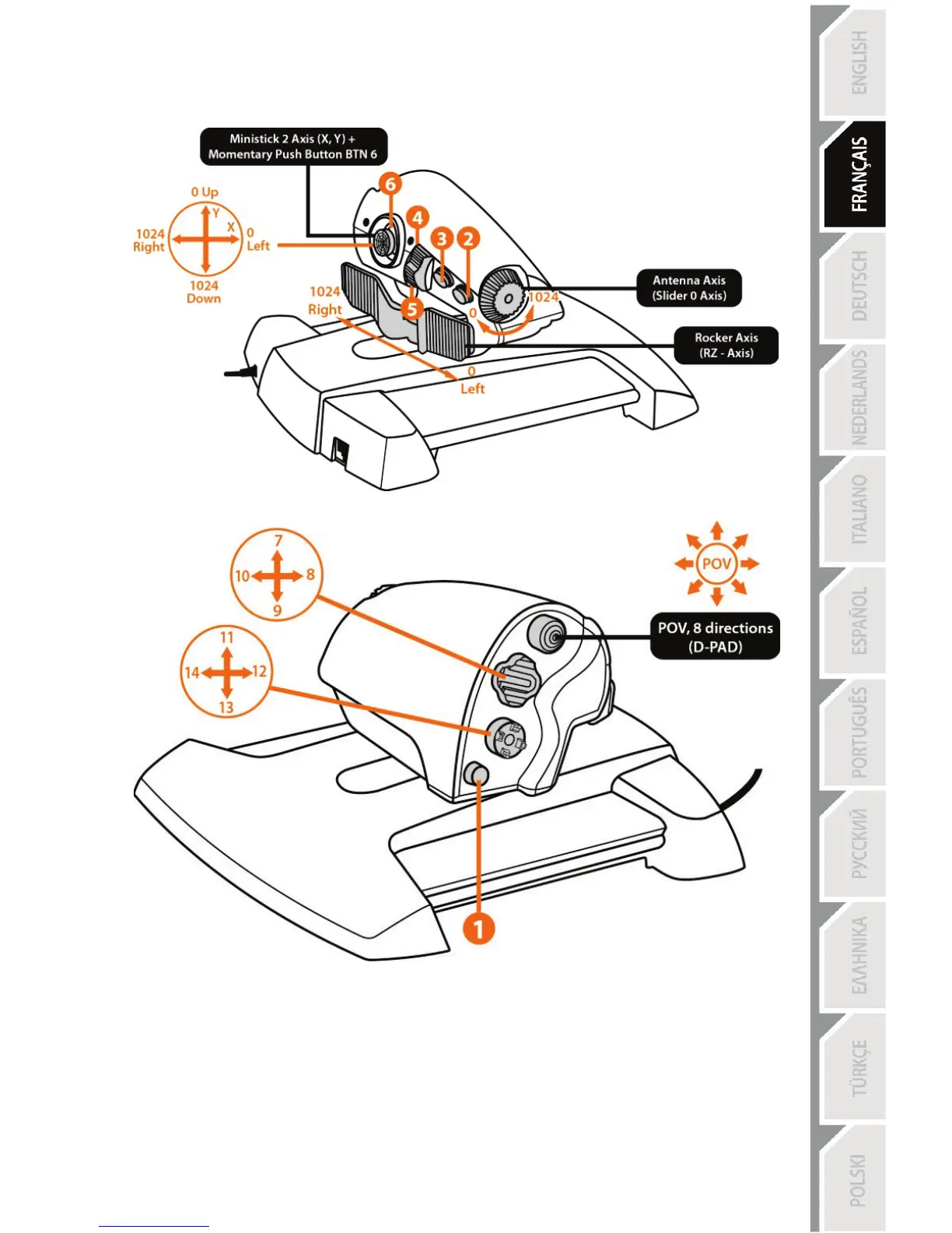 MAPPING DES 14 BOUTONS ET DES 8 AXES