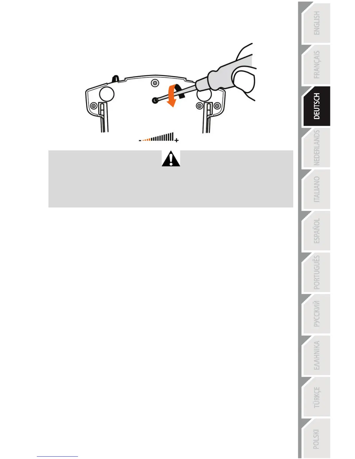 • Um den Reibungswiderstand zu verringern, drehen Sie die Schraube gegen den