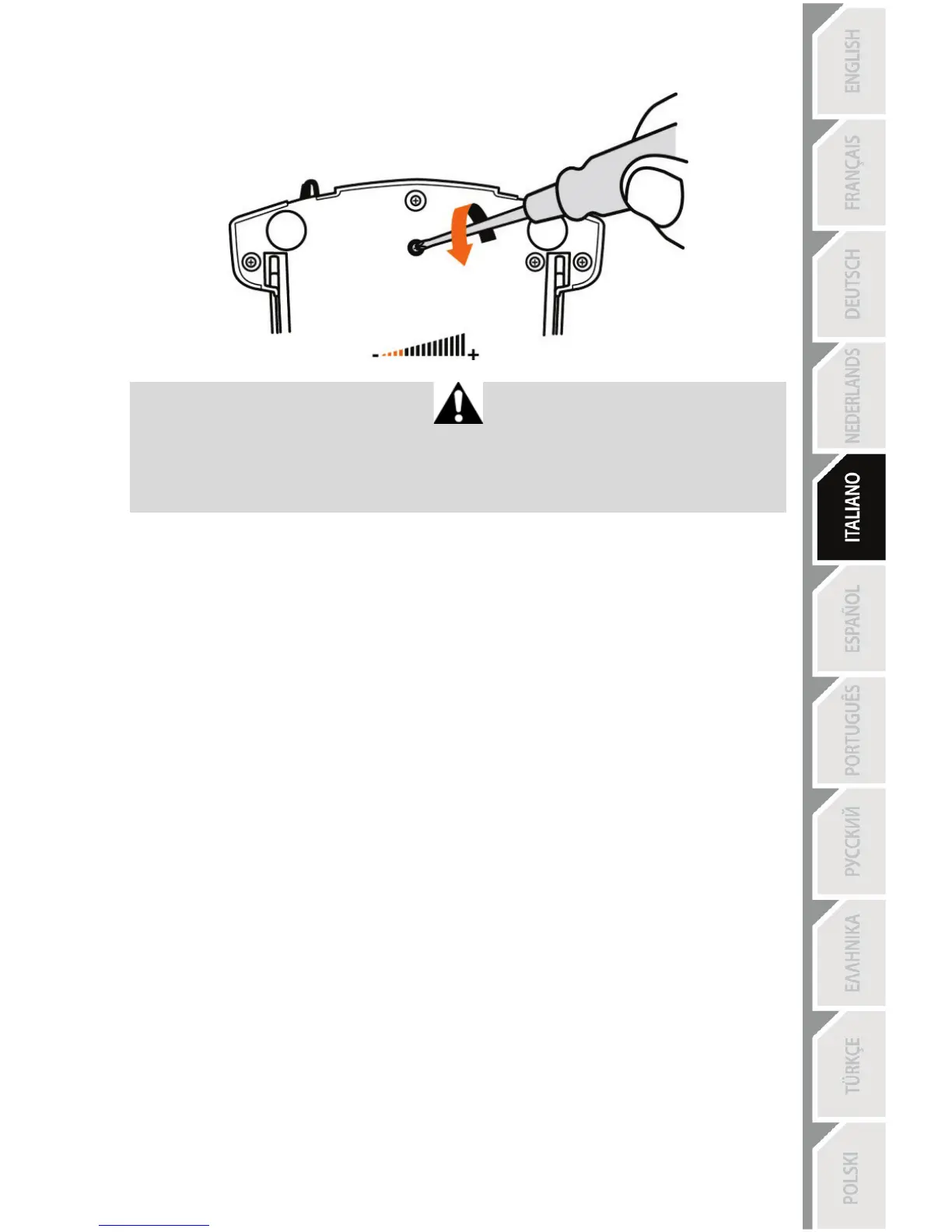 - Non stringere troppo la vite di regolazione, altrimenti potresti danneggiare il sistema di