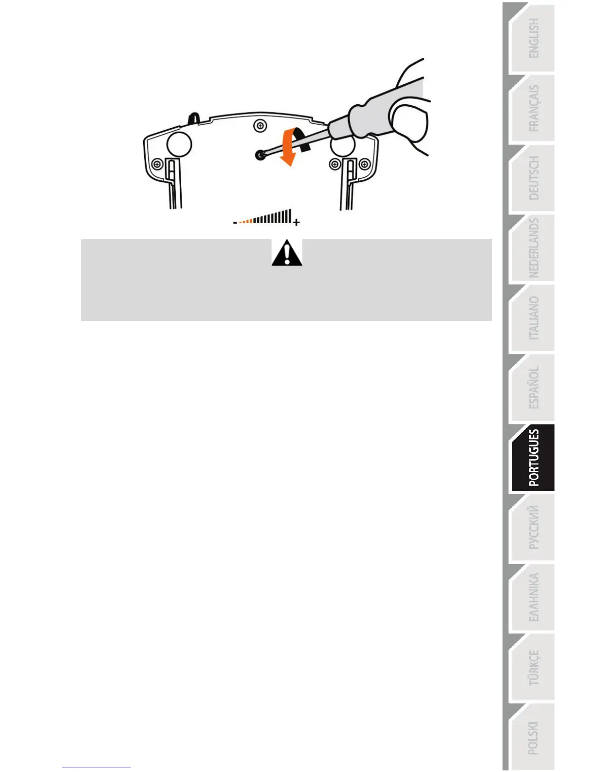 - Não aperte demasiado o parafuso de regulação, caso contrário poderá danificar o sistema