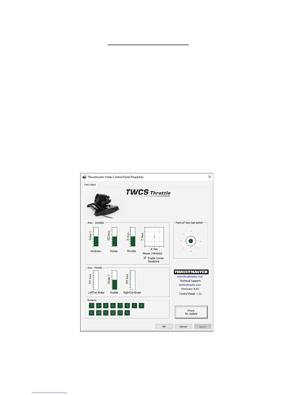 Η συσκευή εμφανίζεται με το όνομα TWCS Throttle, με την κατάσταση OK.