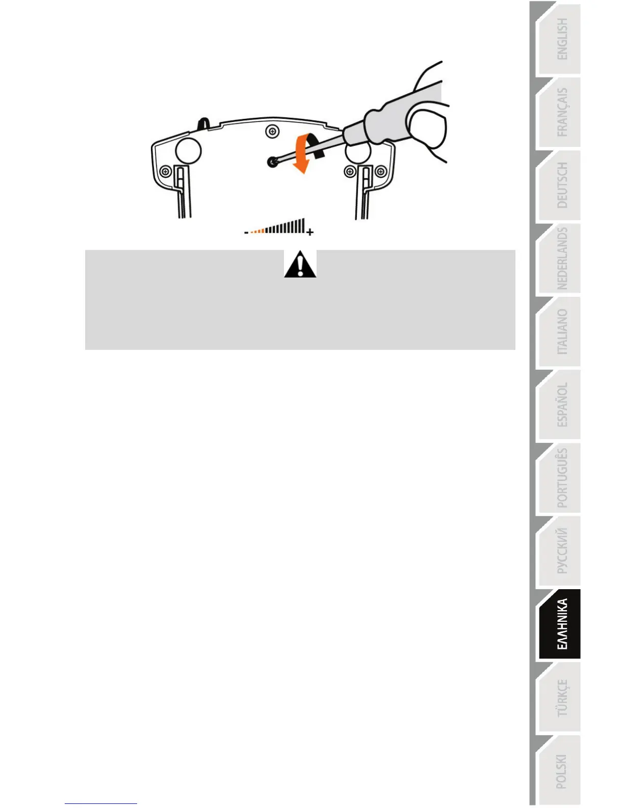 - Μην σφίγγετε υπερβολικά τη βίδα ρύθμισης, καθώς αυτό θα μπορούσε να προκαλέσει