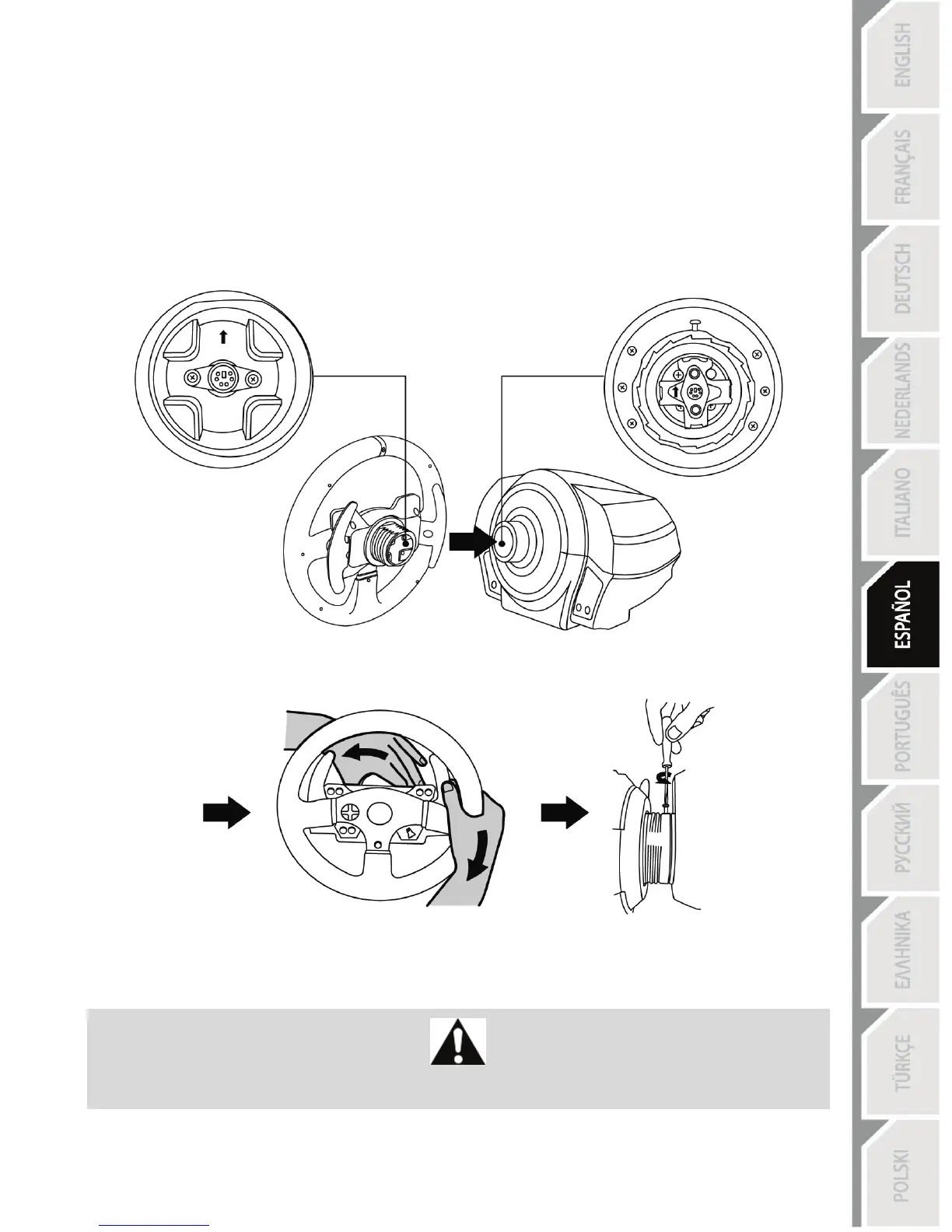 Una vez que hayas instalado el volante de carreras, gíralo 180° (cuando mires al volante, el logotipo de