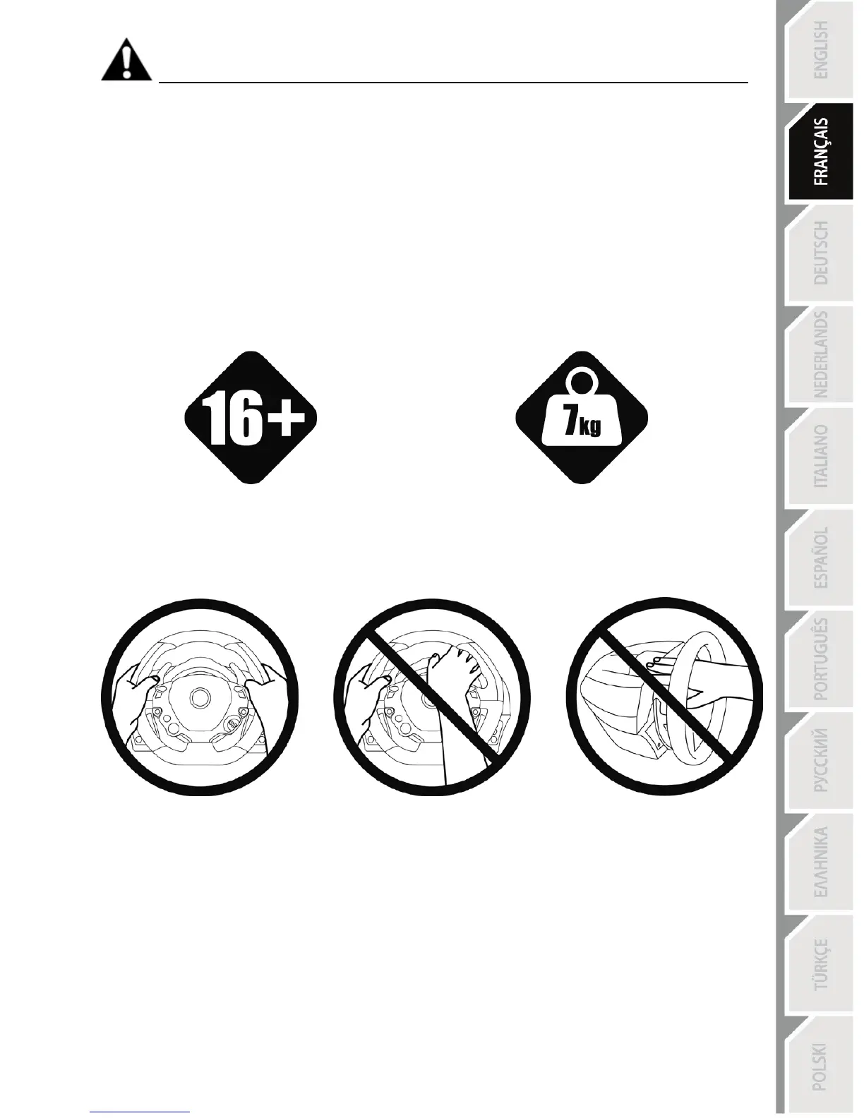 * Lors des phases de jeu, laissez toujours vos deux mains correctement positionnées sur le volant