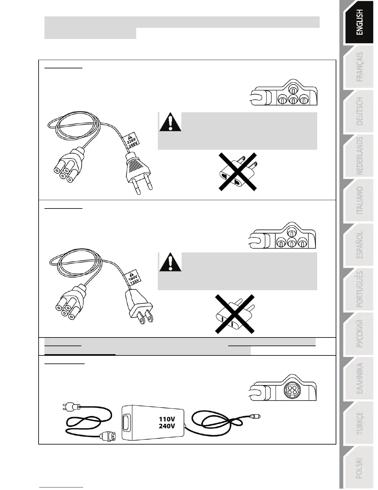 IMPORTANT: if you do not know which voltage is supplied in the area in which you are