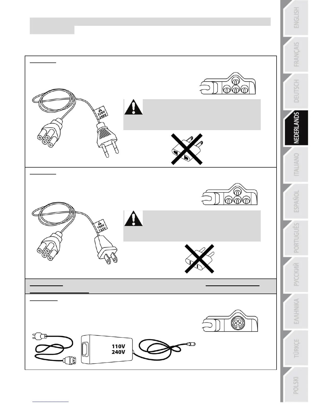 = alleen compatibel met een voedingsspanning van 220-240 V.