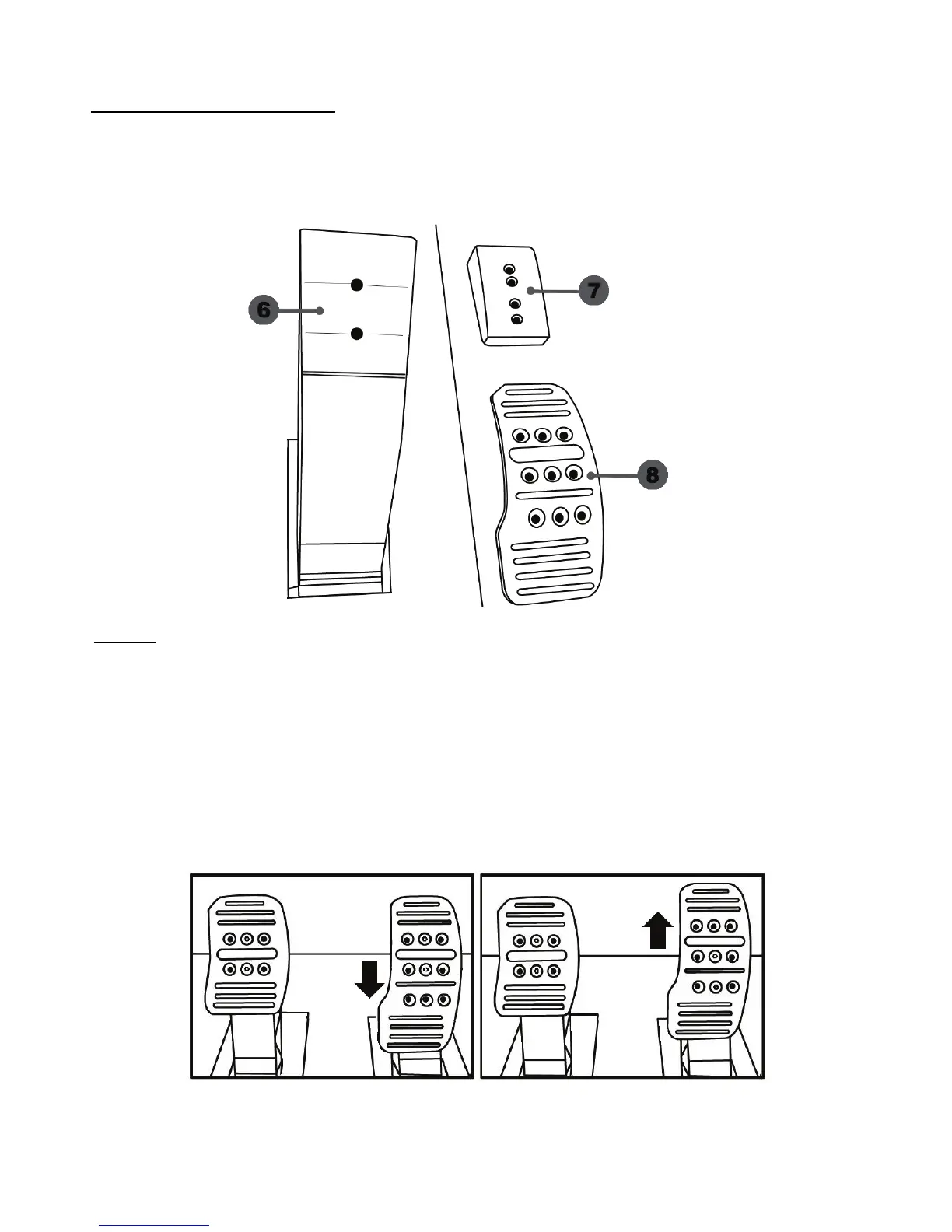 - Een metalen pedaal (8) met een aantal gaatjes (negen voor het gaspedaal, zes voor het rempedaal en