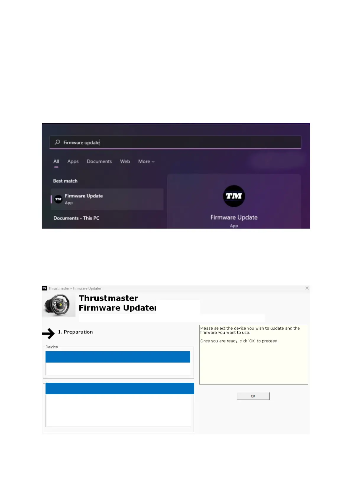 6) Het venster van de Thrustmaster – Firmware Updater wordt weergegeven.