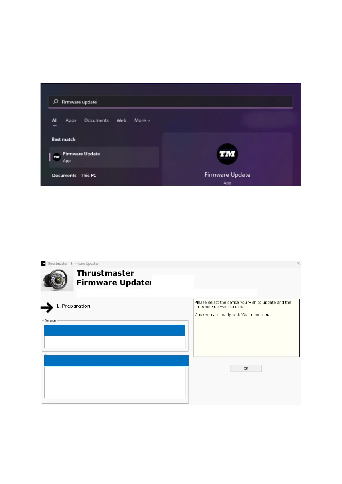 6) 画面に、Thrustmaster – Firmware Updater ウィンドウが表示されます。