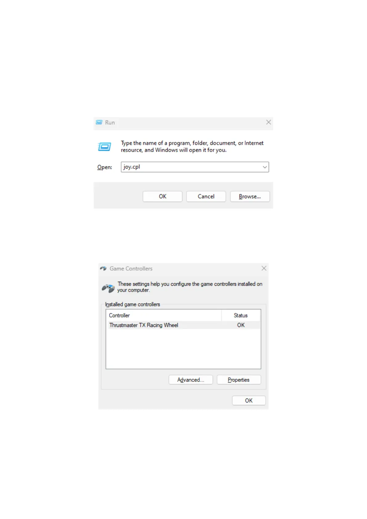 실행 창이 열리면 joy.cpl을 입력한 후 확인을 클릭합니다.