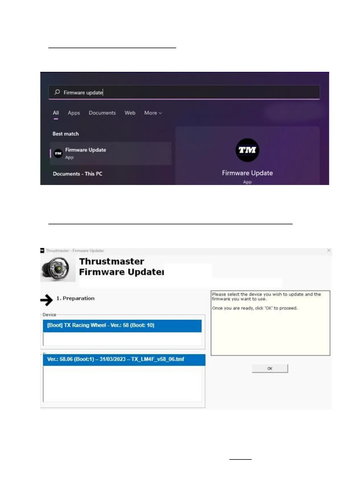 6) Het venster van de "Thrustmaster – Firmware Updater" wordt weergegeven