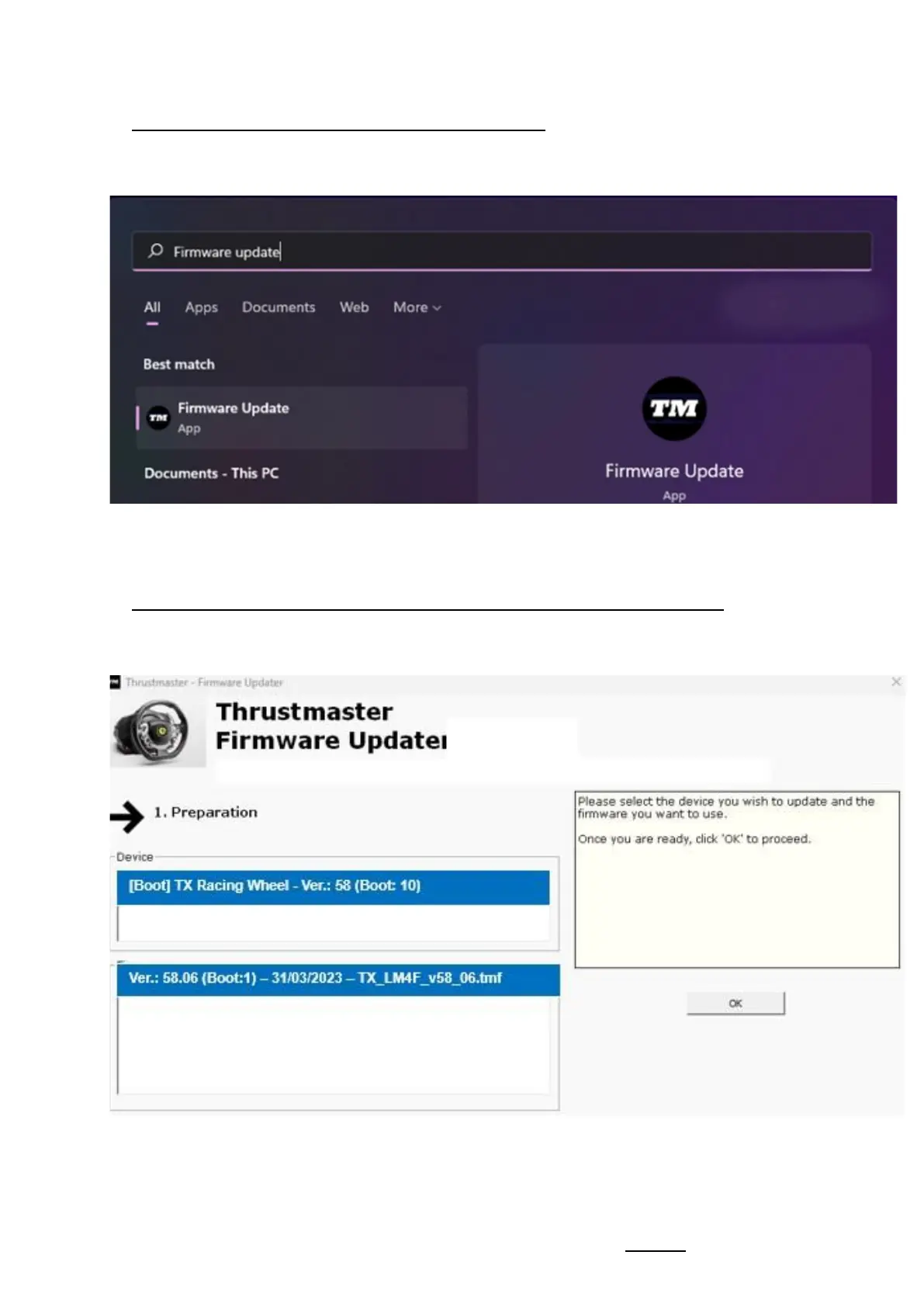 6) The "Thrustmaster – Firmware Updater" window appears onscreen