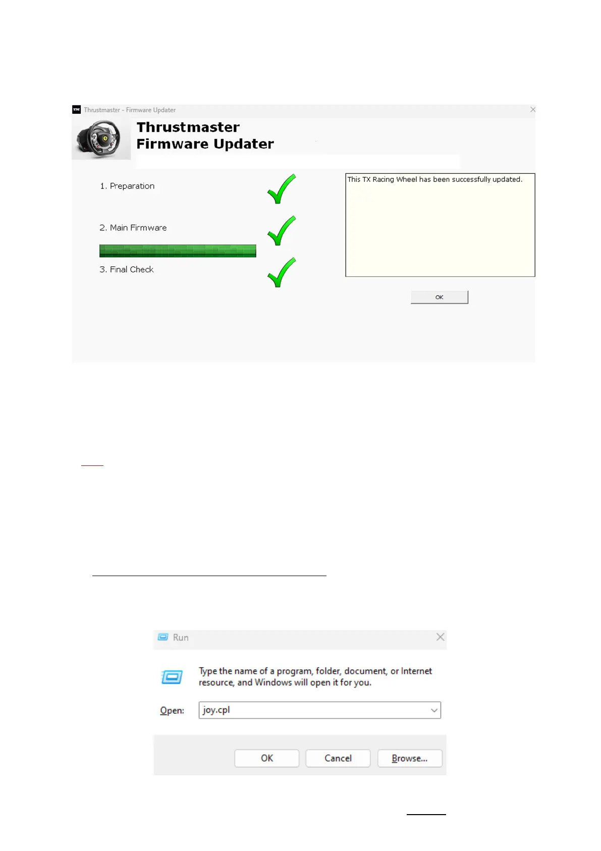 10) 제어판에서 TX Racing Wheel 를 테스트하세요