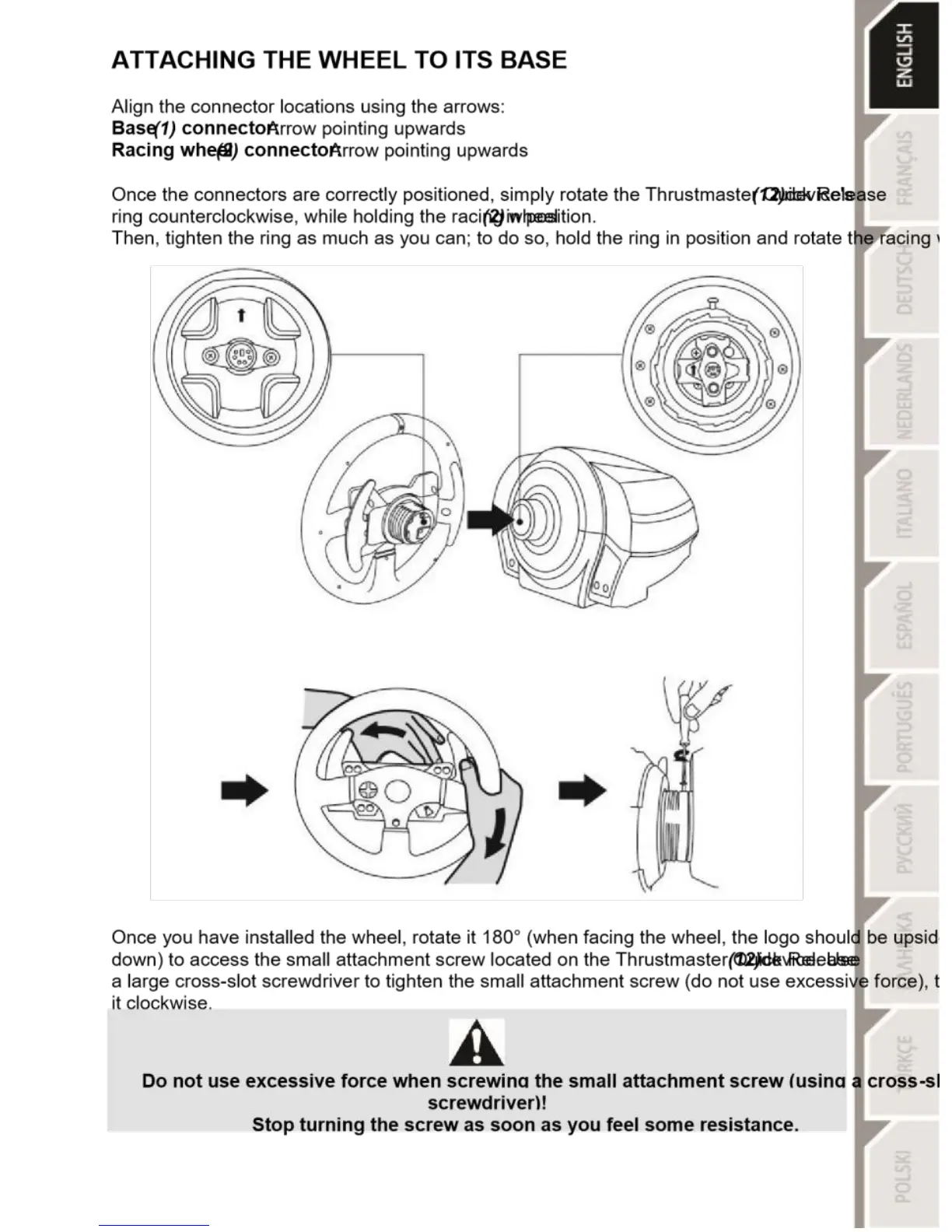 Thrustmaster TX racing wheel - Attaching the Racing Wheel; Wheel to Base Connection