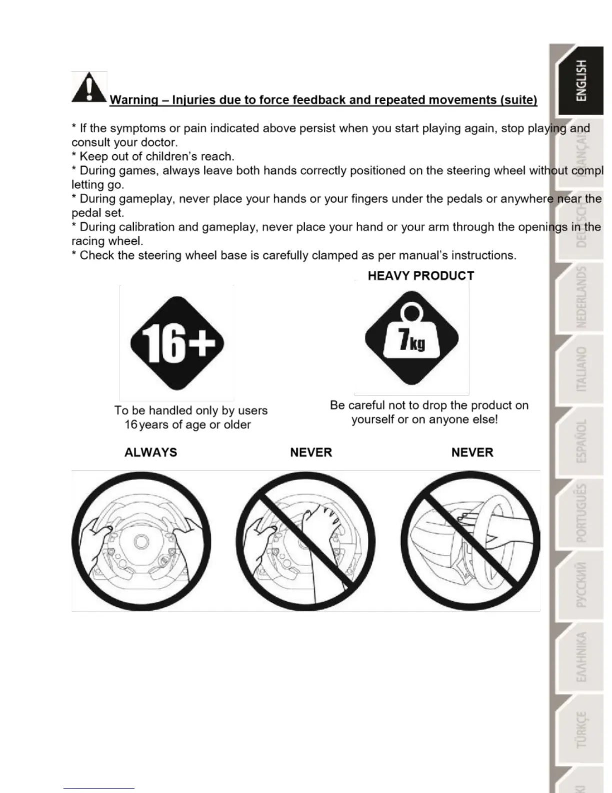 Thrustmaster TX racing wheel - Child Safety & Product Handling